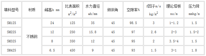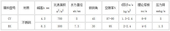 sw型網(wǎng)孔波紋填料幾何特性參數(shù)